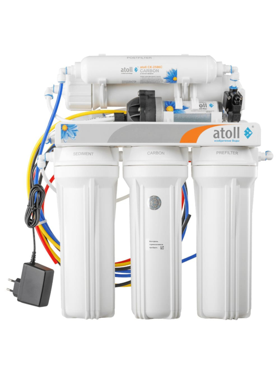 - 5-я ступень: Для улучшения вкусовых качеств и полной дезодоризации воды используется угольный постфильтр atoll CK-2586C.