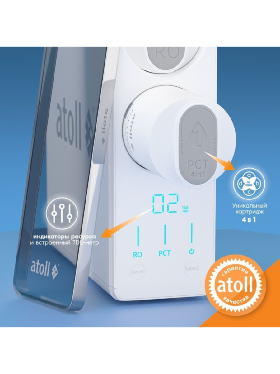 - Многофункциональная стадия - картридж atoll PCT-A TWIST разделён на два отделения с отдельными каналами подачи и выхода воды Первая секция удаляет грубые механические примеси хлор органику и тонкие механические включения Дополнительный компонент антискалант предотвращает образование минеральных отложений удлиняя срок службы мембраны.