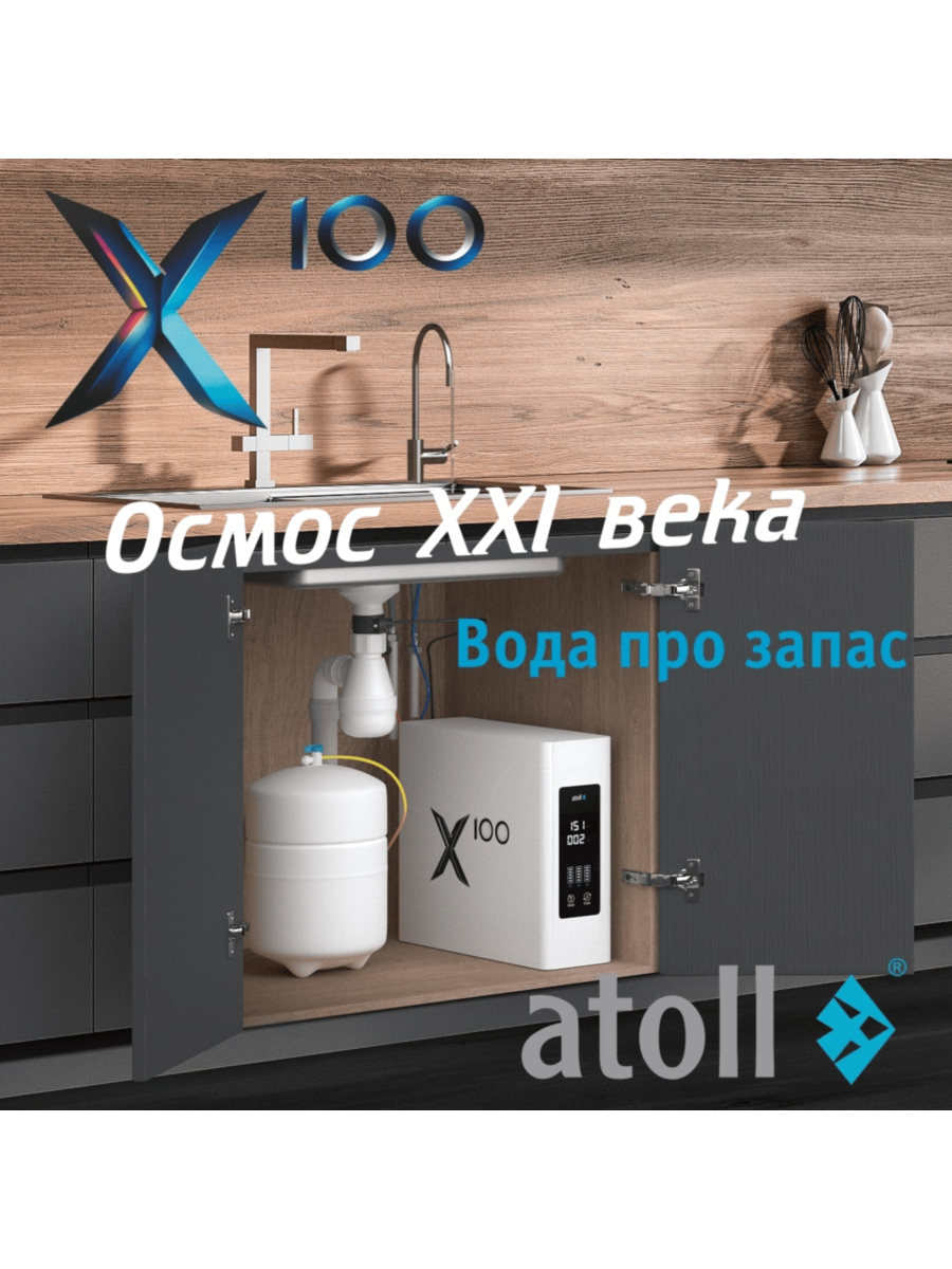 Подробная информация о технических параметрах и схеме работы системы обратного осмоса atoll X100 без крана предоставлена в прилагаемой инструкции.