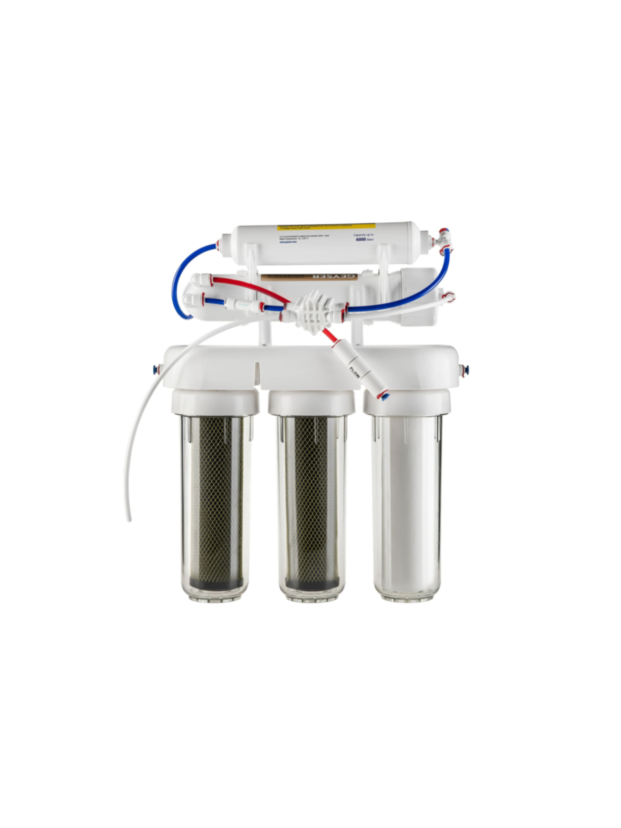 - Используется мембрана обратного осмоса повышенной производительности (175 GPD), эффективно удаляющая до 99% всех загрязнений, включая тяжелые металлы, соли жесткости, бактерии и вирусы;