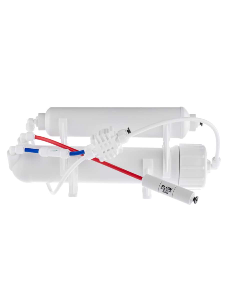 - Оснащен качественными фильтрующими элементами: сорбционным предфильтром, обратноосмотической мембраной 50 GPD и постфильтром-кондиционером, обеспечивающими полную очистку от примесей;