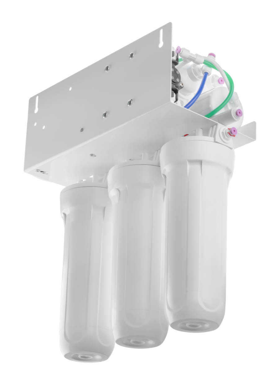 - Оснащена встроенной помпой, повышающей давление в системе до оптимального диапазона 3—6 атмосфер, что гарантирует эффективную работу фильтра и стабильную производительность;