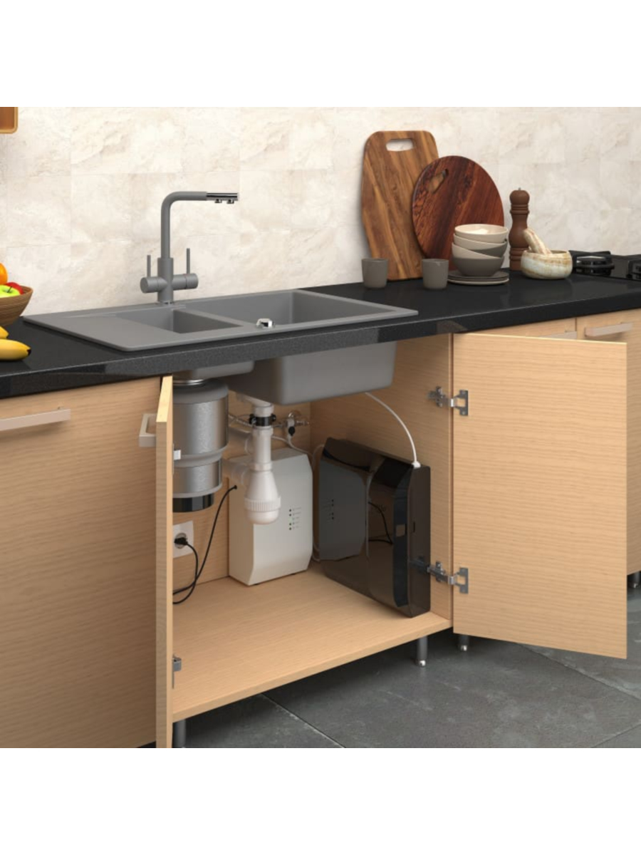 - Практичный дизайн позволяет установить фильтр под мойку, не нарушая эргономику кухни.