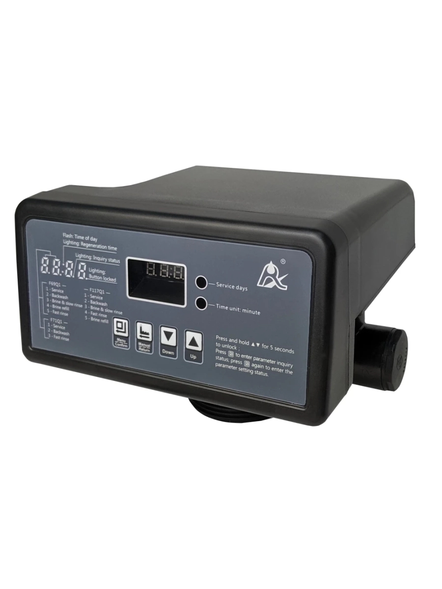 Автоматический клапан Runxin TMF117Q1 предназначен для управления процессами удаления жесткости и железа в засыпных ионообменных системах очистки воды. Он оснащён электронным таймером, который автоматически переключает режимы регенерации и промывки загрузочного материала в заданное время, обеспечивая стабильную работу установки без необходимости постоянного вмешательства оператора.