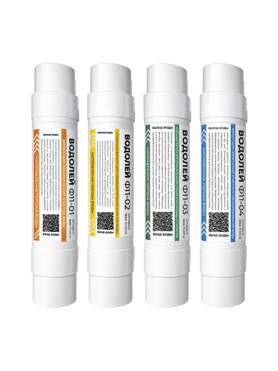 Комплект картриджей Водолей №01 — полный набор сменных фильтрующих модулей Ф 11‑01 / 11‑02 / 11‑03 / 11‑04