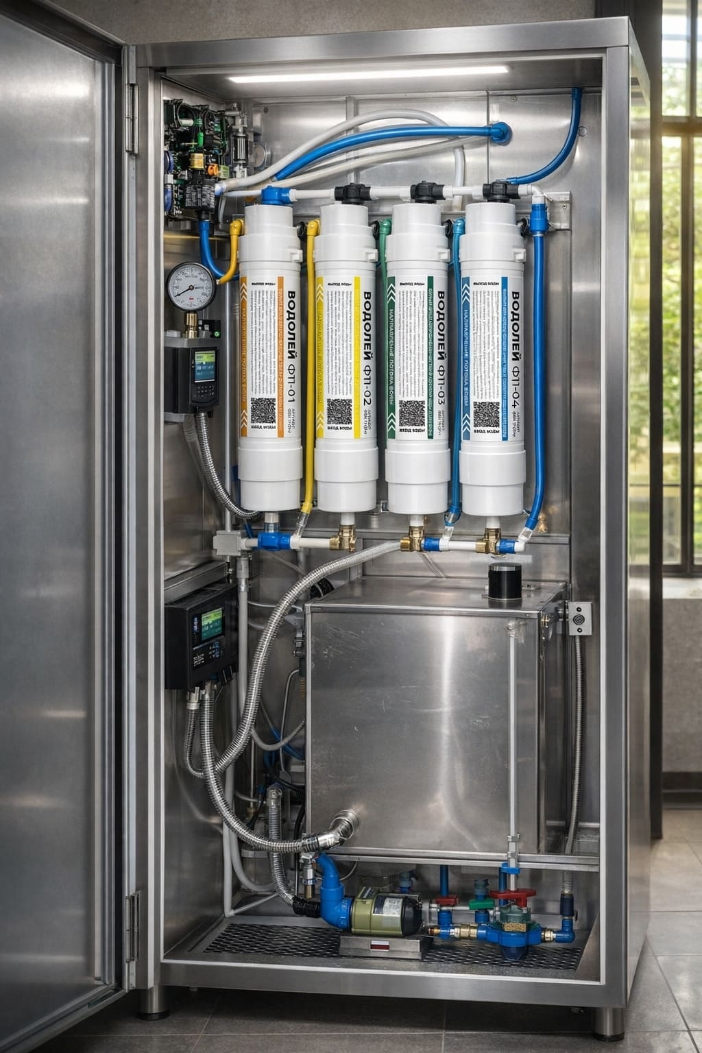 - системы предварительной очистки перед более сложными установками (обратный осмос, умягчение)